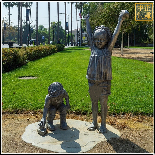 公園與游樂場是擺放兒童雕塑的理想之地。這些地方通常是孩子們嬉戲玩耍的樂園,雕塑的加入不僅為孩子們提供了與藝術(shù)互動(dòng)的機(jī)會(huì),還能為他們的游戲增添更多的樂趣。例如,在公園的草坪上,可以擺放一組描繪孩子們?cè)陉柟庀卤寂艿牡袼?,這不僅與公園的自然環(huán)境相得益彰,還能引發(fā)孩子們對(duì)美好生活的向往。